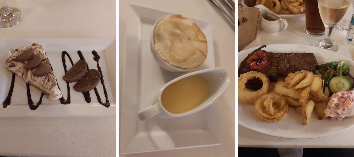 We went for steak night, the steak was cooked to perfection and a good size portion. Gorgeous country pub with a alot of drink selection and very good price!! Cant wait to go back!